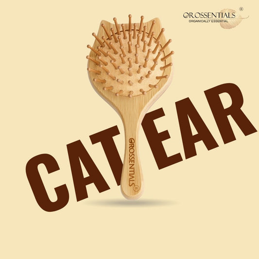 OROSSENTIALS Cat Shape Bamboo wooden Hair Brush - Eco-Friendly Choice (ORO-016)