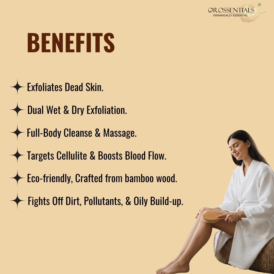 OROSSENTIALS Wooden Dry Body Brush With Handle (ORO-022)