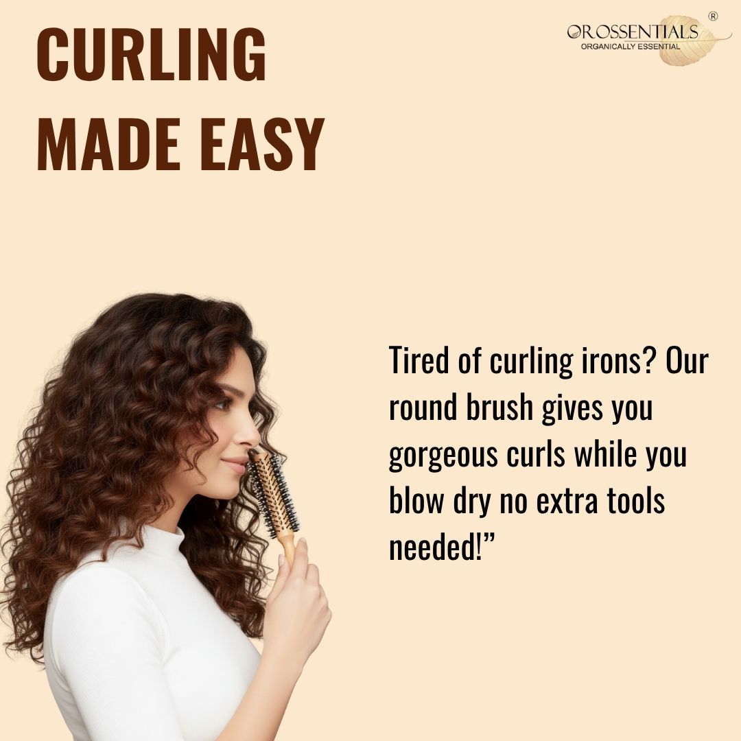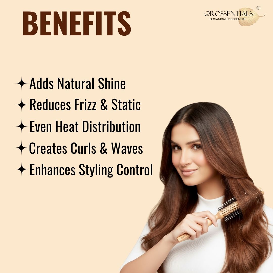 The Orossentials Round Nylon Bristles Wooden Hair Brush is expertly designed for precise styling of short hair, bangs, and men's beards. Its durable wooden handle offers a comfortable grip, while the nylon bristles provide gentle detangling and effective blow-drying.